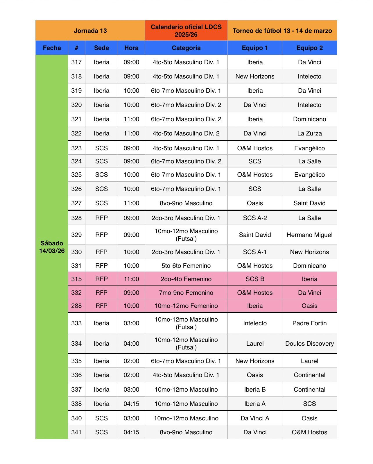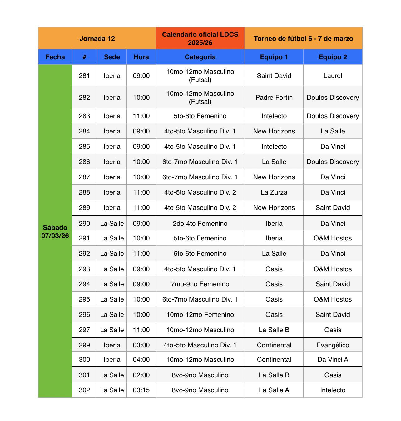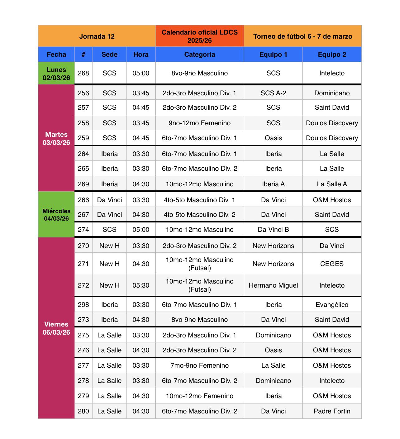 Partidos de la semana.